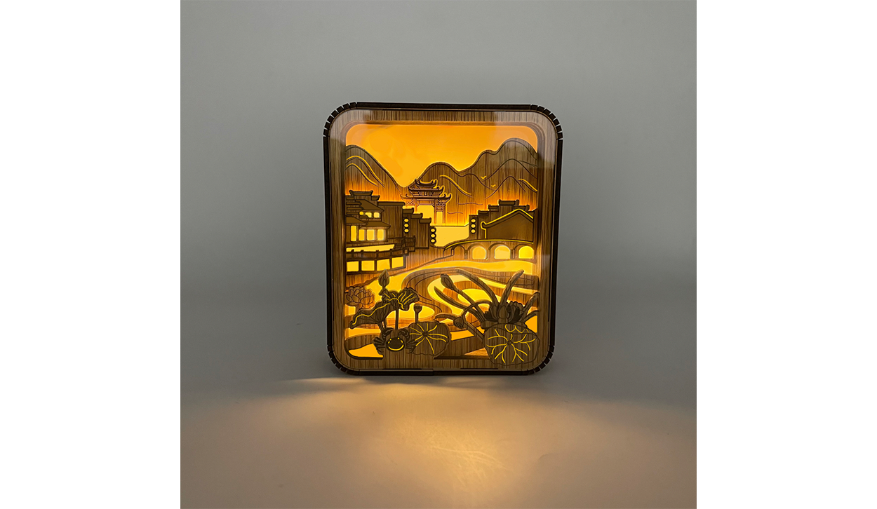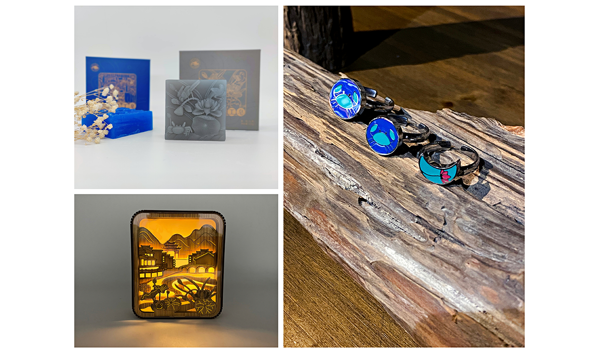 荷蟹图砖雕及荷蟹图小夜灯提取荷蟹元素应用于常用小物件,将和谐概念融入日常生活。