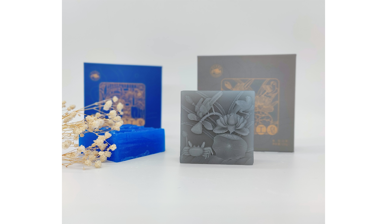 和谐系列产品设计源自馆藏荷蟹图砖雕。砖雕有清晰可见的荷花、螃蟹,古人借其谐音“和谐”,表达对美好生活的期盼。