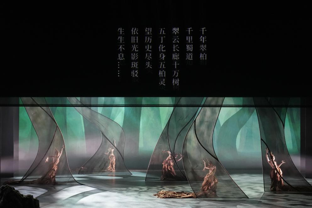 10月16日,演员在第十四届中国艺术节开幕演出中表演《翠云苍穹》篇章。新华社记者 胥冰洁 摄