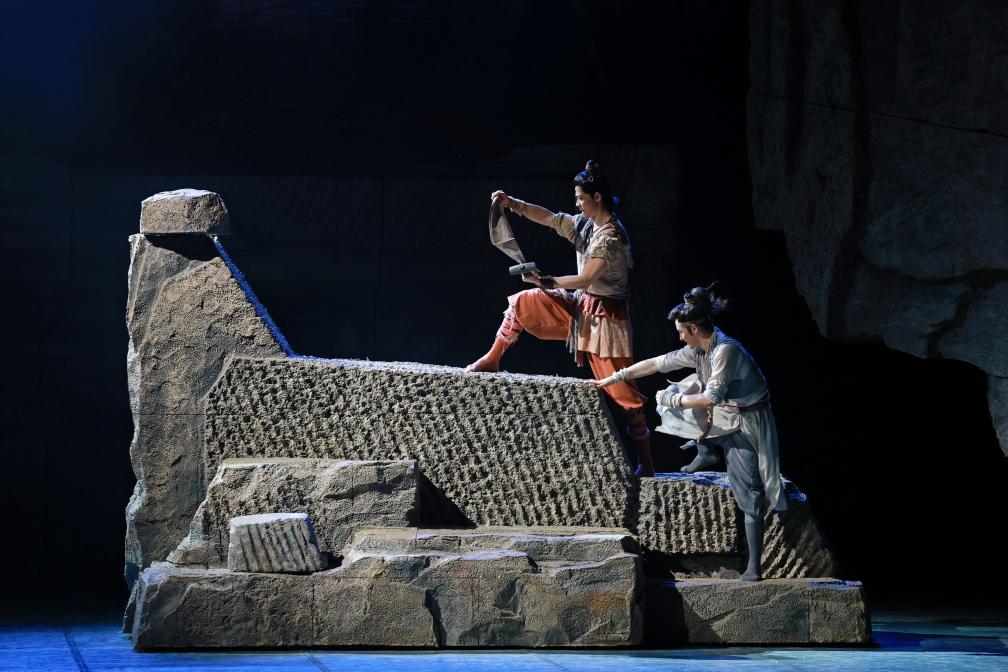 新技术、新媒介也正助力舞台艺术不断创新。婺剧《三打白骨精》中,无人机“化身”小蜜蜂点缀舞台;为突破石刻艺术的静态局限,舞剧《天下大足》在舞台中央设置以“照见自己,照见众生”为主题的巨型镜面装置,灯光与多媒体技术则细腻还原洞窟内的光影流转,营造出虚实相生的诗意场景。