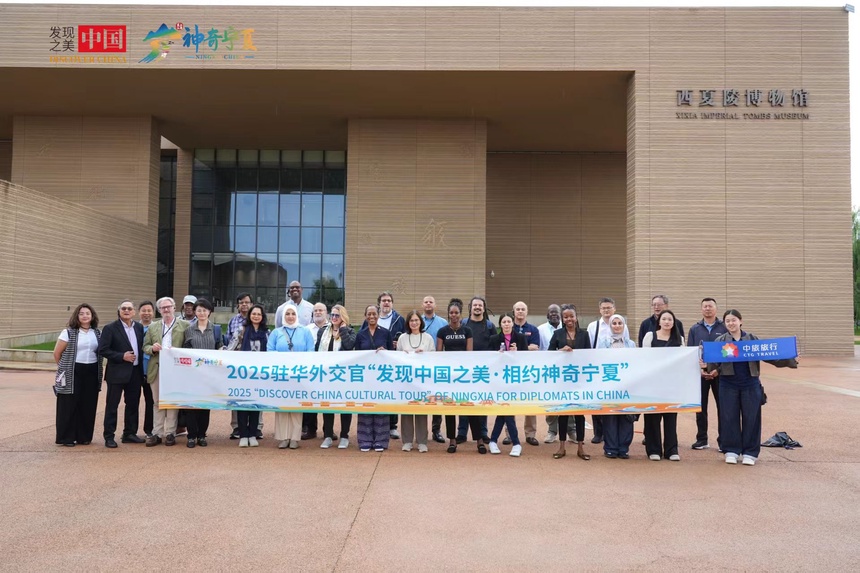 8月26日,由文化和旅游部主办的2025“发现中国之美·相约神奇宁夏”活动在银川启动。来自多米尼克、约旦、阿根廷、哥伦比亚、克罗地亚等14个国家,包括10个国家驻华大使在内的21位外交官走进宁夏博物馆、宁夏美术馆与西夏陵遗址,深入感受多元文明交融与时代文化创新;考察葡萄酒庄、枸杞庄园及宁夏丝路市集,重点了解农文旅融合、夜间经济等新业态发展成效。