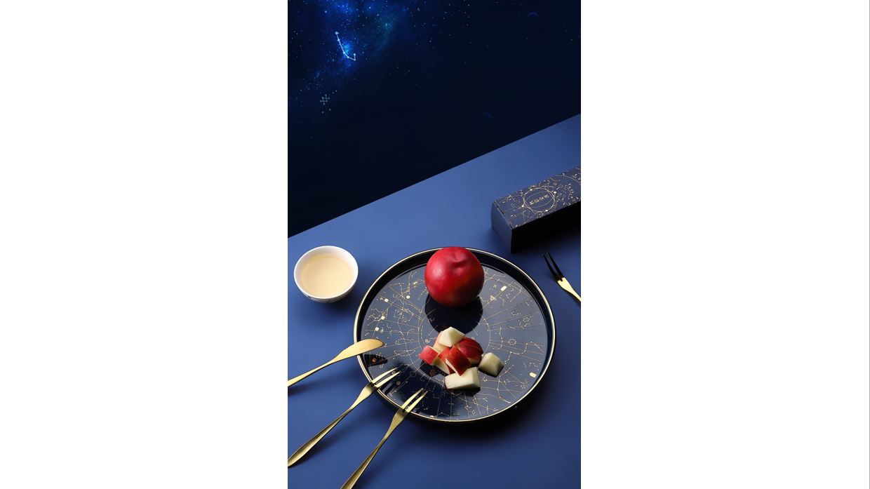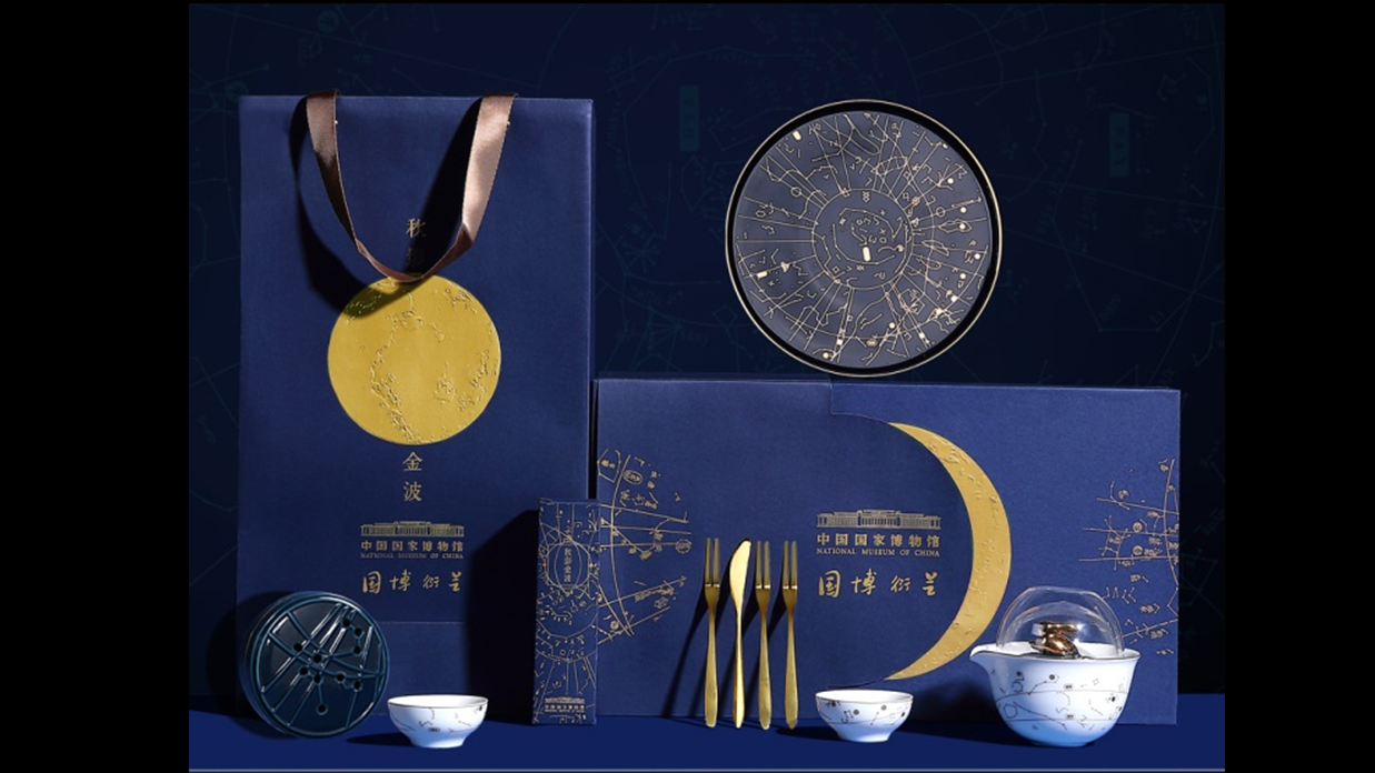 提取天文图中的星图作为纹饰绘制于餐具上,星罗棋布间彰显宇宙奥秘与古人智慧。
