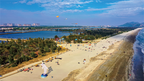 5.金厢银滩:金厢银滩位于汕尾陆丰市金厢镇,是乡村振兴滨海走廊 示范带上亮丽的风景线。金厢镇沿海外立面做了改造升级,沿线的房屋画上墙绘,缤纷的色彩犹如童话世界。