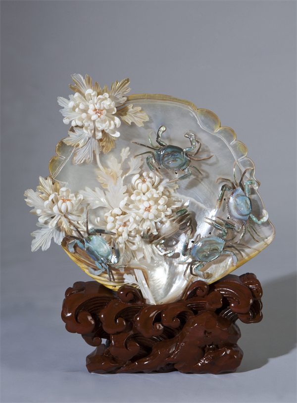 甲子贝雕:省级非物质文化遗产,以贝壳为雕刻材料,制作成人物、花鸟鱼虫、花瓶摆件、漆板挂画、屏风等大小不同、形状各异的作品。