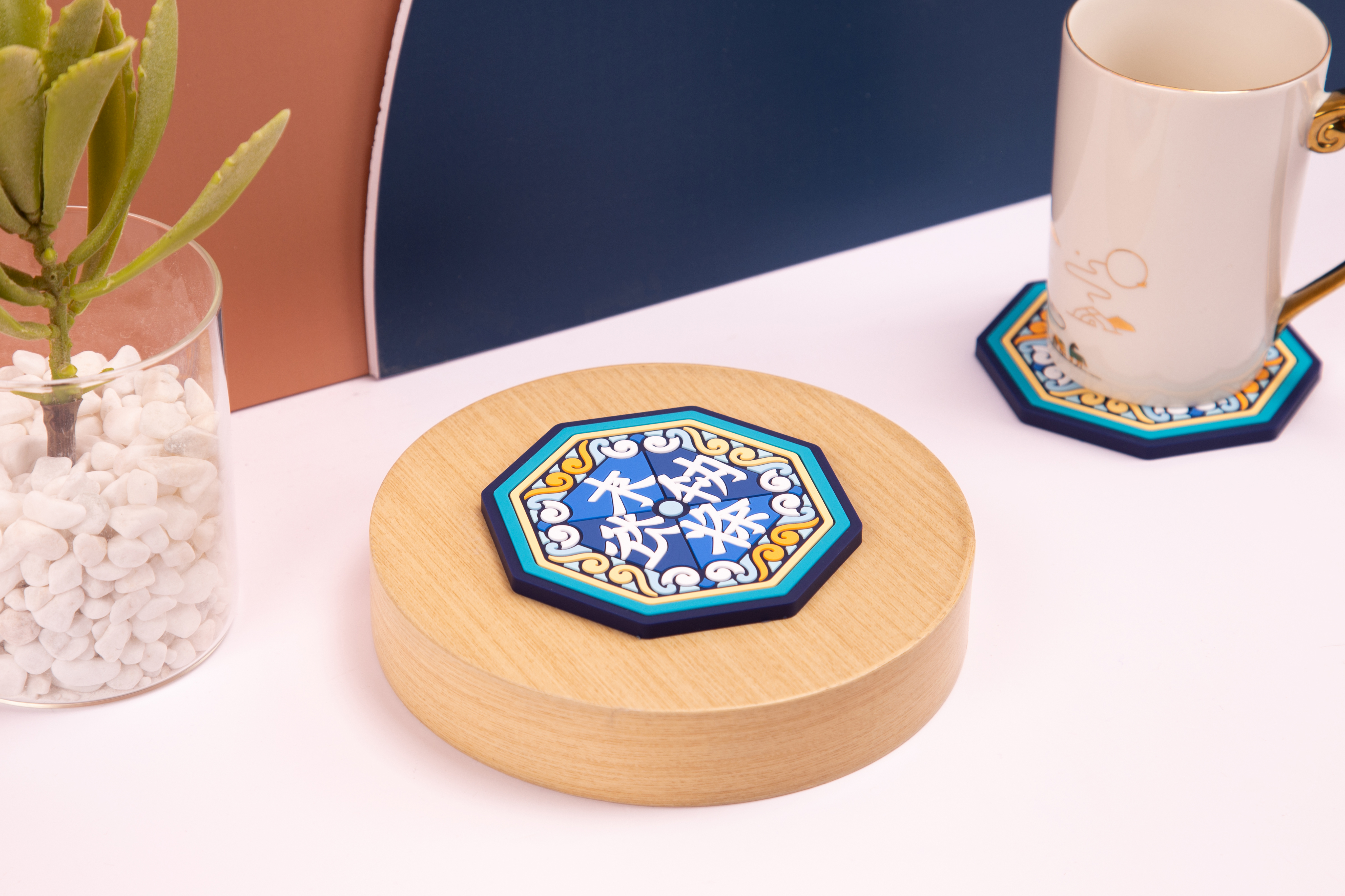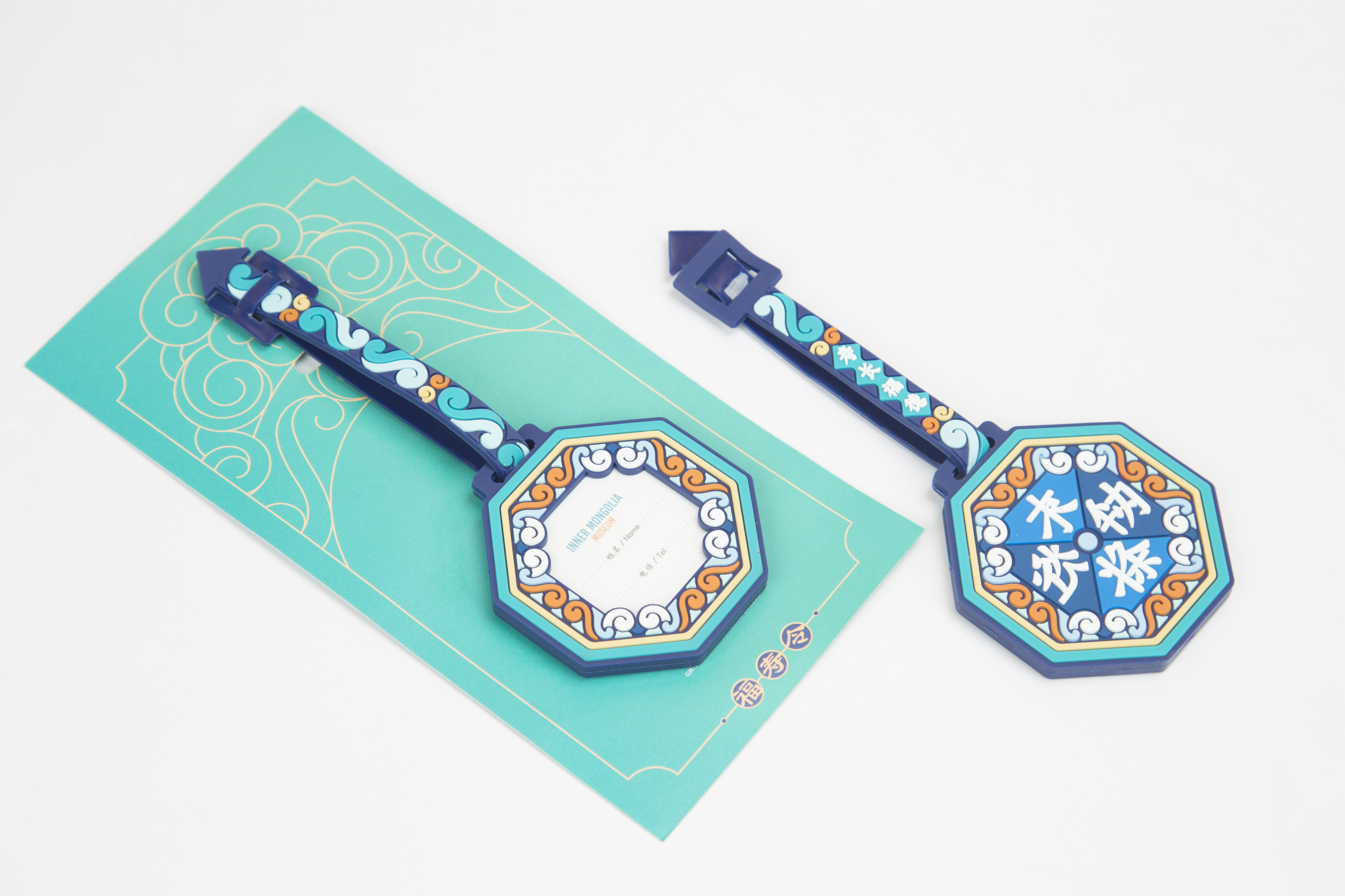 《福寿令》系列保留了文物中典型的铜镜外形与独具特色的“契丹小字”,取名“福寿令”,用明快的色调和极富韵味的简约图形,延续“寿长福德、万事安康”的美好寓意。
