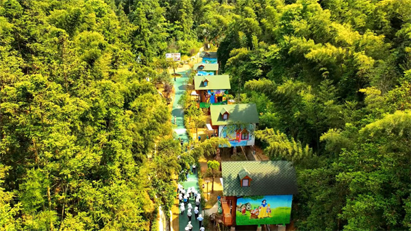 童话树屋酒店:位于桐花谷景区哎马乐园内部,占地面积3000平方米,共有17栋隐藏于竹林和树林之间的书屋,每栋树屋的童话主题都以绘画的形式展现出来,一栋树屋一个故事主题,树屋都是以榫卯结构设计与建造,秉承传统手工艺,不仅环保自然,还带有木材的原香味,令人心旷神怡。