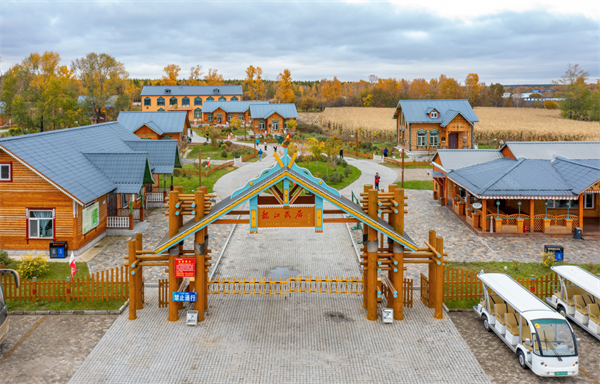 瑷珲镇外四道沟村龙江民居:占地1万平方米,采取木刻楞设计,展现北方民居建筑风格。5G网络、电力、通信、有线电视等设施齐全、功能完备,是集绘画研学、特色民宿、民族风情体验于一体的文化艺术区。