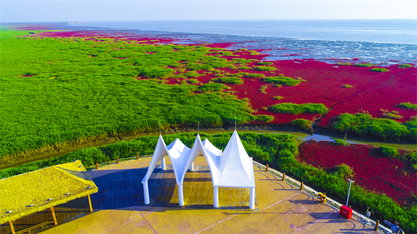 红海滩国家风景廊道景区:国家5A级旅游景区,绵延18公里的碱蓬草织就世界罕见红色海岸线。景区以“生态为基、艺术为媒、民俗为魂”,构建全域文旅体验链,重塑湿地文旅新生态。依托红滩、绿苇、金稻交织的湿地景观,打造小岛闲情观鸟区、稻田画大地艺术区、碱蓬草生态观赏区等沉浸场景。