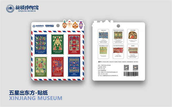 “五星出东方利中国”织锦护臂是中国各民族交流交往和互通互融的见证,被誉为“20世纪中国考古学最伟大的发现之一”。五星出东方系列文创,用新材料、新形式和新场景,把文物与文物背后的文化历史,融入到不同年龄群受众的各个生活场景中,新奇有趣的文创设计,让古老文物“种草新新人类”,实现五星出东方利中国这一文物IP的艺术释放。